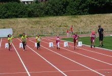 Odpolední program zahájily soutěže místních škol (základních a středních). Běhy, skoky do výšky a do dálky, a pro mne překvapivě i oštěp (mimo hlavní ovál v samostatném prostoru). Jen jsem byl trochu zmaten, protože kluci a holky dohromady, občas podivný mix věkových kategorií, torchu skřípající organizace rozběhů – no, já vím, byla to spíš exhibice a příležitost, než soutěž, ale v porovnání s tím, co mám možnost už roky vidět ve VDF nebe a dudy. Dorazila média z okresu -> i studio Vandej ->, bubeníky vystřídali THE PIX a hlavně se nakonec objevili hosté. K Anežce se přidal hejtman Ústeckého kraje Oldřich Bubeníček a také Helena Fibingerová. Tím pádem mohlo dojít na slavnostní přestřižení pásky, další pózování a projevy. Na další program jsem nečekal a vzal to domů přes raut pro hosty…