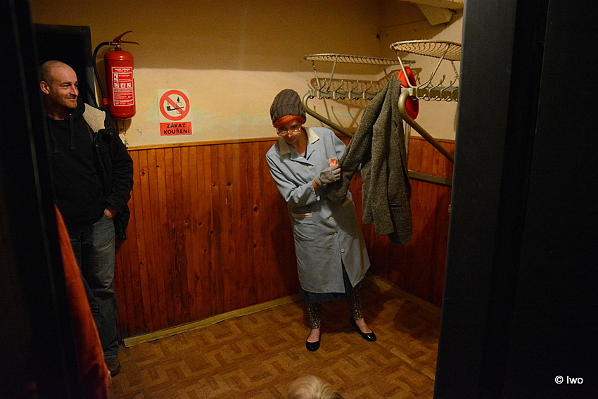 Původně se mělo jít napříč divadelní budovou jen třikrát, ale zájem prudce předčil veškerá očekávání. A myslím, že nikdo z těch, kdo se prošli místy, která možná dosud v divadle neviděli, nelitoval. Propletená realita s hororovou fantazií, spousta faktických dat z historie divadelního souboru, nenásilně navazující na nedávné besedy v Městské knihovně (Miloš Horanský, Michaela Bendová), umístěná do vyvražďovačky zanikajícího souboru, cesta od vstupu až do sklepa, rámovaná krví a roztomilým mrkáním průvodkyně – jevištní nápovědy – autorky detektivky. Hana Strejčková se tady u nás chytila drápkem, městu už věnovala jedno celé představení, a zjevně jsme jí nevyčerpatelnou studnicí inspirace. Což je pro nás velké štěstí – ač je rozsah jejího portfolia takřka neuvěřitelný (od představení pro nejmenší přes taneční show až po drama), daří se jí, nač sáhne. Jak se o ní vyjádřil výše zmíněný profesor Horanský – někdo má tu moc, že se na něj všechno včetně těch správných lidí tak nějak nabaluje…