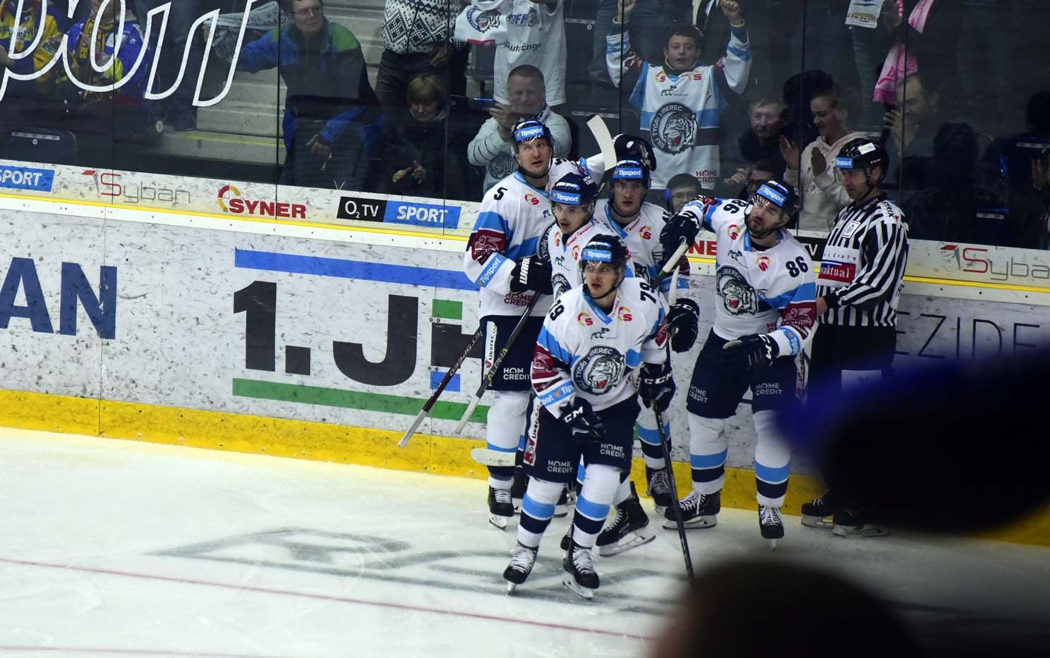 První branku dal v šesté minutě Vlach, do konce první třetiny přidal druhou Jelínek a třetí, uklidňující, Redenbach. Ve čtřiadvacáté minutě přidal další kousek Birner a hned na úvod poslední třetiny dal kýženého bůra Fillippi a nebylo o co hrát, jenom snad o čestný úspěch. Ten si nakonec za hosty připsal Šťastný.