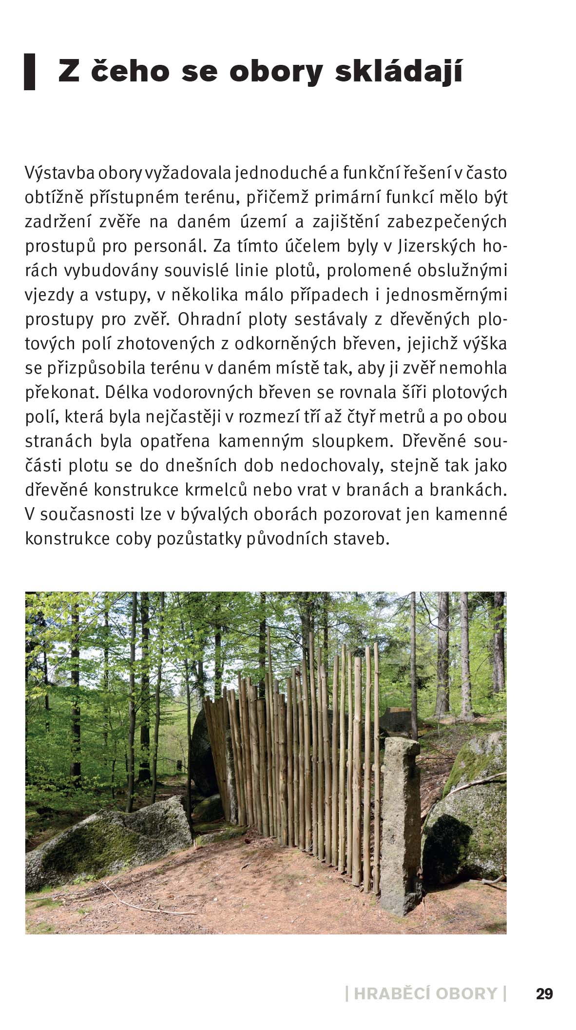 Obsah knihy je rozčleněn do několika kapitol, které popisují historii obor i jejich účel a strukturu. Pro poutníky ale bude asi nejzajímavější ta, která popisuje, skoro krok za krokem, trasu, kudy procházel oborní plot: V nejnižším bodě této zkratky je sloupek z kapsami do „T“ a odtud obora pokračovala po okraji lesa až do horní Fojtky, kde bývala hájovna v oboře a plot vedl po západní straně parcely.