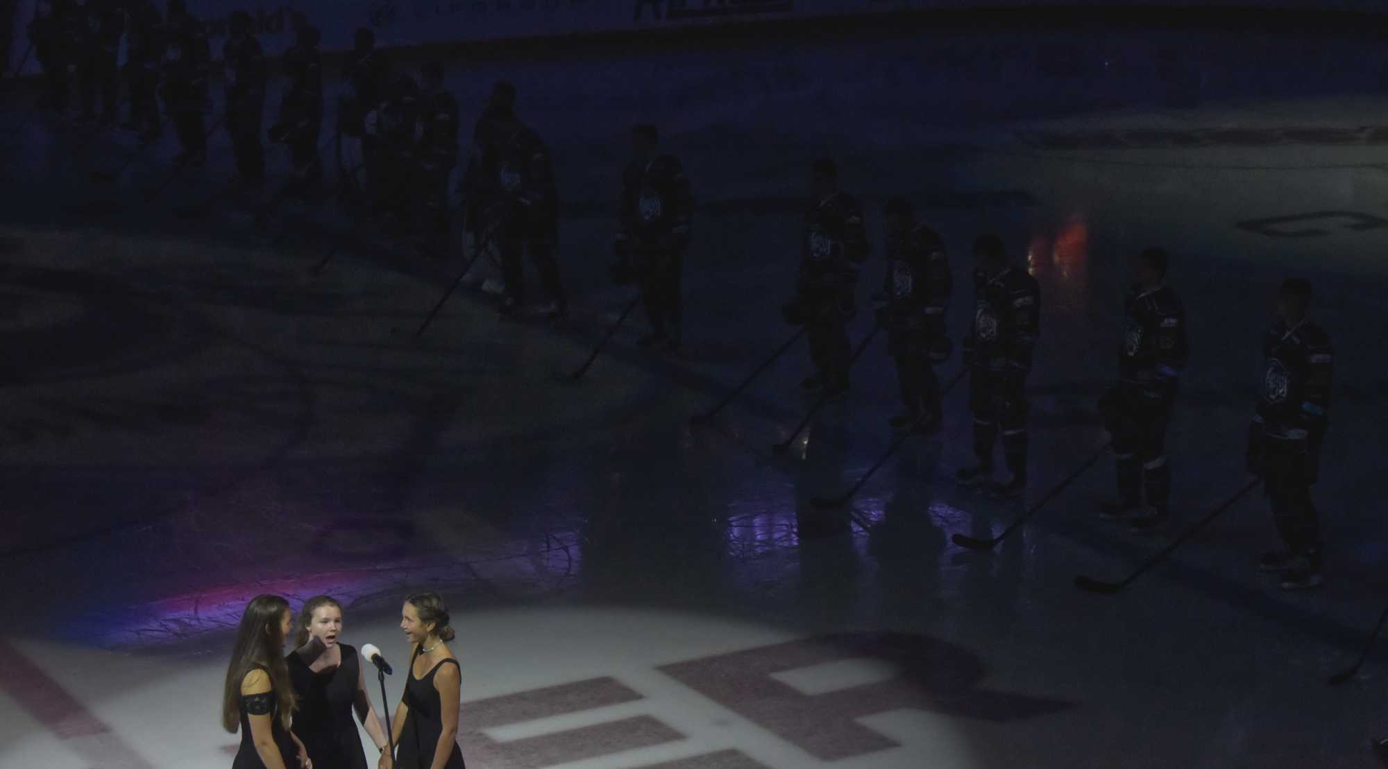 Hymna před prvním extraligovým zápasem Bílých Tygrů. Foto Darek Mouša