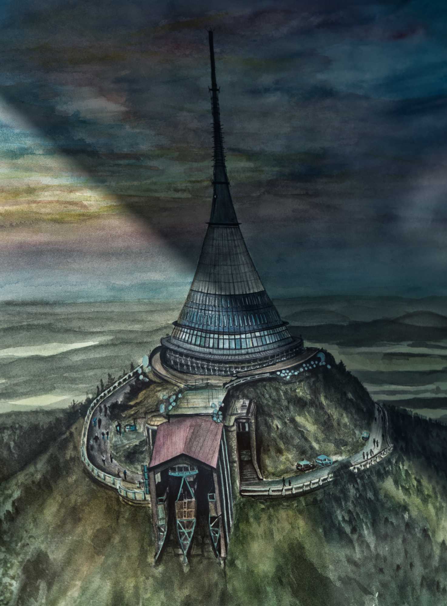 Mnohokrát jsem slyšel historku o tom, že Karel Hubáček nedodržel zadání soutěže a vysílač měl být oddělen od prostorů, kde se bude bydlet a jíst, ale to nám ředitel muzea Jiří Křížek vyvrátil, naopak mi prozradil novou informaci, že k prosazení stavby Ještědu tak, jak ho známe pomohl předpoklad, že podobných staveb vznikne v Čechách celá řada, půjde tedy nakonec jen o jakýsi prototyp, který se bude replikovat a ještědy tak budou na kdejakém kopci. Přiznám se, že tahle představa je pro mě děsivější, než kdyby se Hubáčkovu stavbu nepodařilo nad Libercem realizovat vůbec.