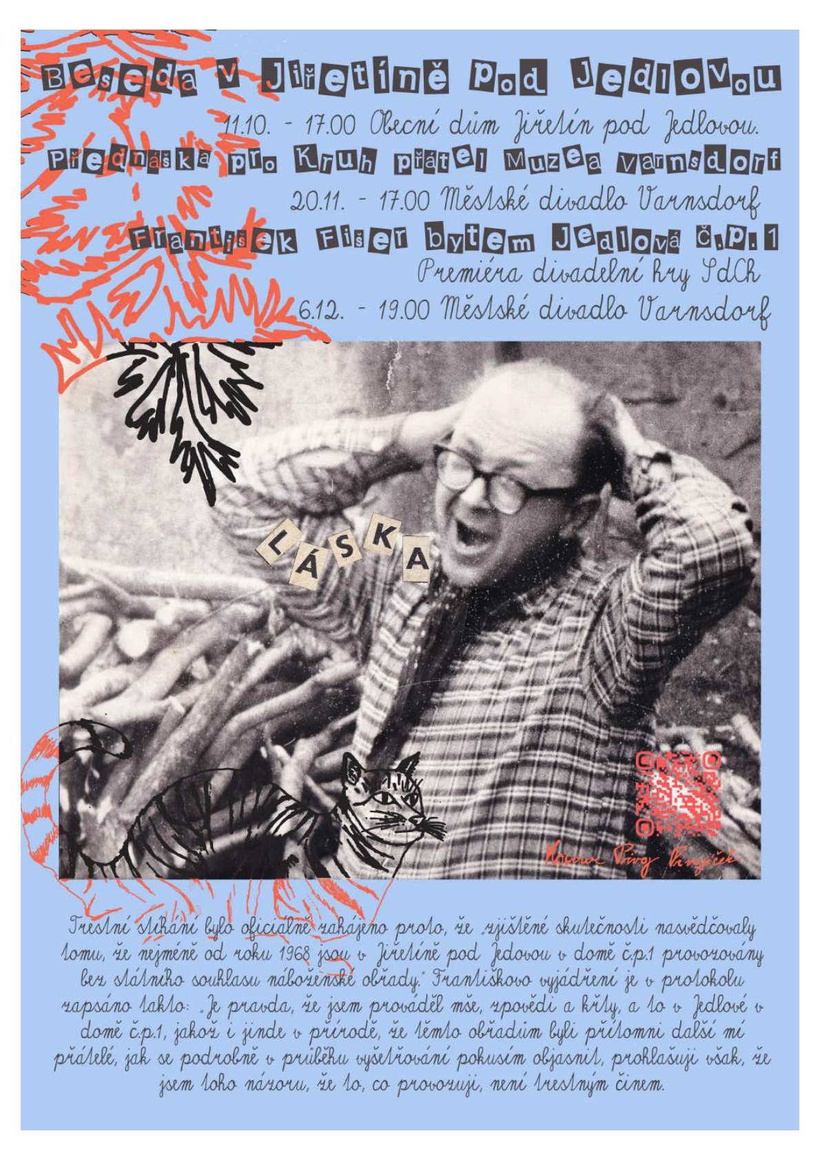 100. výročí Františkova narození připomeneme na podzim besedami v Jiřetíně a Varnsdorfu a divadelní hrou ve varnsdorfském městském divadle. Komentovanou procházku 13.9. 2025 povede Karel Stein, který se s Františkem Fišerem osobně znal a spolupracoval s ním na překladu Průvodce Českým Švýcarskem od Ferdinanda Náhlíka.
