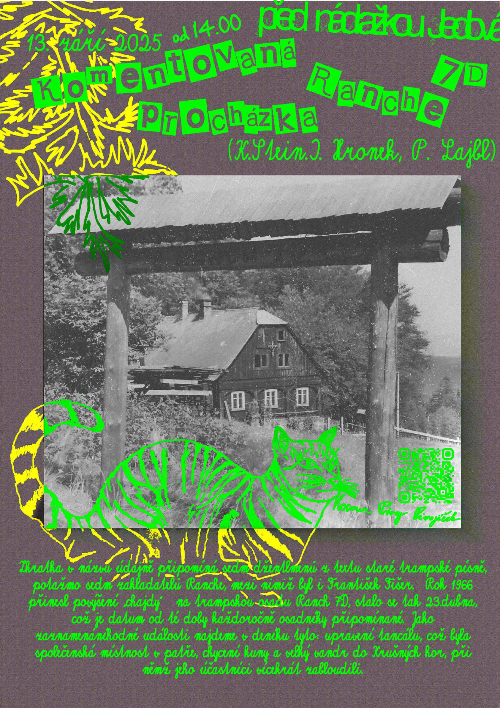 Pár desítek metrů od turistického rozcestníku U ranče na Jedlové stojí podstávková chalupa s roubeným srubem, věžičkou a bránou s nápisem Ranch 7D. Od roku 1950 tu žil František Fišer – pro kamarády Fanda, v trampské komunitě známý jako Rancher.