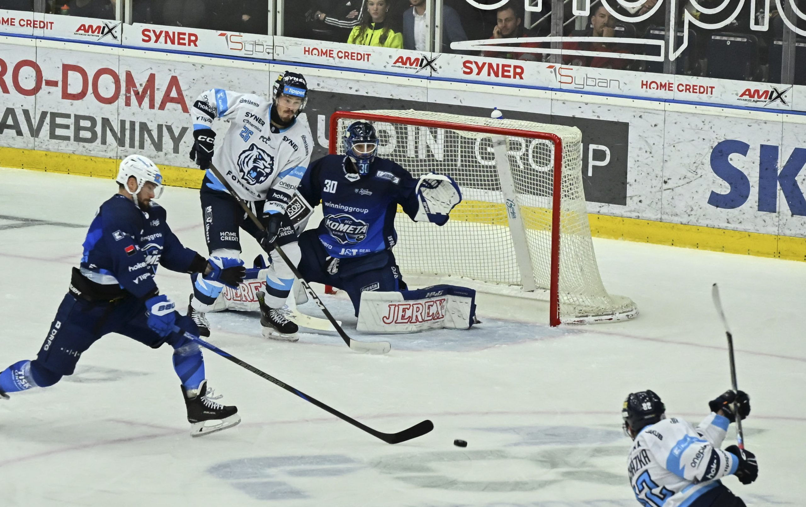 Svižný, zábavný, hodně hokejový zážitek plný zvratů přinesl zápas osmnáctého kola letošní hokejové extraligy mezi libereckými Tygry a brněnskou Kometou. Domácí od začátku hýřili aktivitou, ale po samostatném úniku na druhou stranu hřiště se prosadil Marek Ďaloga a Kometa vedla o jednu branku. Vydrželo jí to až do třicáté minuty, kdy se trefil střelec podzimu Jaromír Pytlík, vzápětí ale kontroval Zohorna a brněnští zase vedli.