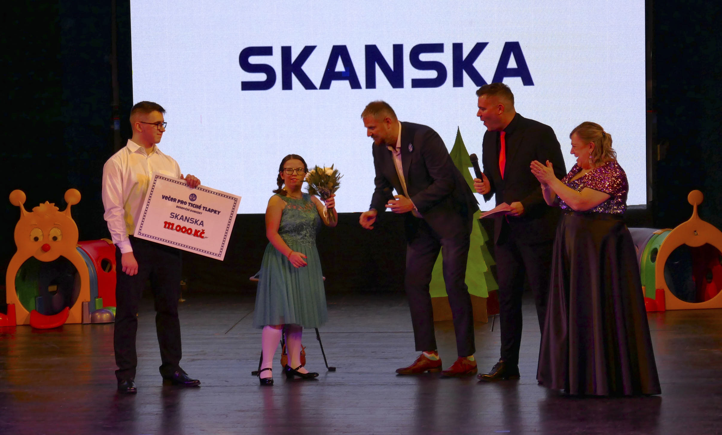 Po loňském rekordu finančního daru (555 tisíc) by se zdálo, že výš už to nepůjde. Sponzoři a dárci byli ovšem letos velice štědří. Konečné vyúčtování ukázalo částku bez pár korun 688 000,- . V této částce jsou zahrnuty velké sponzorské dary – hlavním sponzorem je již mnoho let SKANSKA – i dary drobných dárců, rovněž příspěvky diváků, které proběhly přímo v divadle a také peníze za vydraženého zahradního trpaslíka, který byl součástí jednoho z vystoupení. Za něj dal jeden z diváků dva tisíce korun. Větší část celkové sumy poslouží na terapeutická zvířata, které škola má jako jediná v republice (kočky, psi, králíci, želva), část na vybudování nových specializovaných učeben pro žáky.
