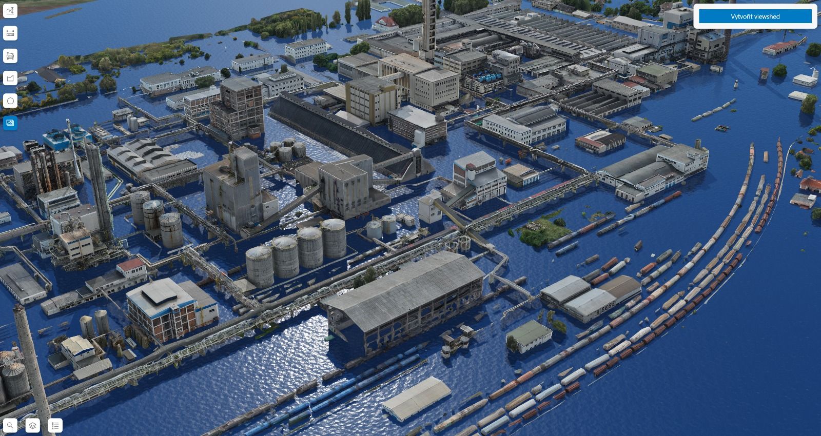 Výsledek práce je veřejný ve webové aplikaci, která běží přímo v prohlížeči. „Chtěl jsem, aby výsledek nebyl jen statický obrázek, ale funkční nástroj. Umožňuje krizovému managementu v reálném čase modelovat například postup povodně areálem, analyzovat, kam vidí bezpečnostní kamery, nebo sledovat počty osob v budovách,“popisuje autor projektu Oto Weber.