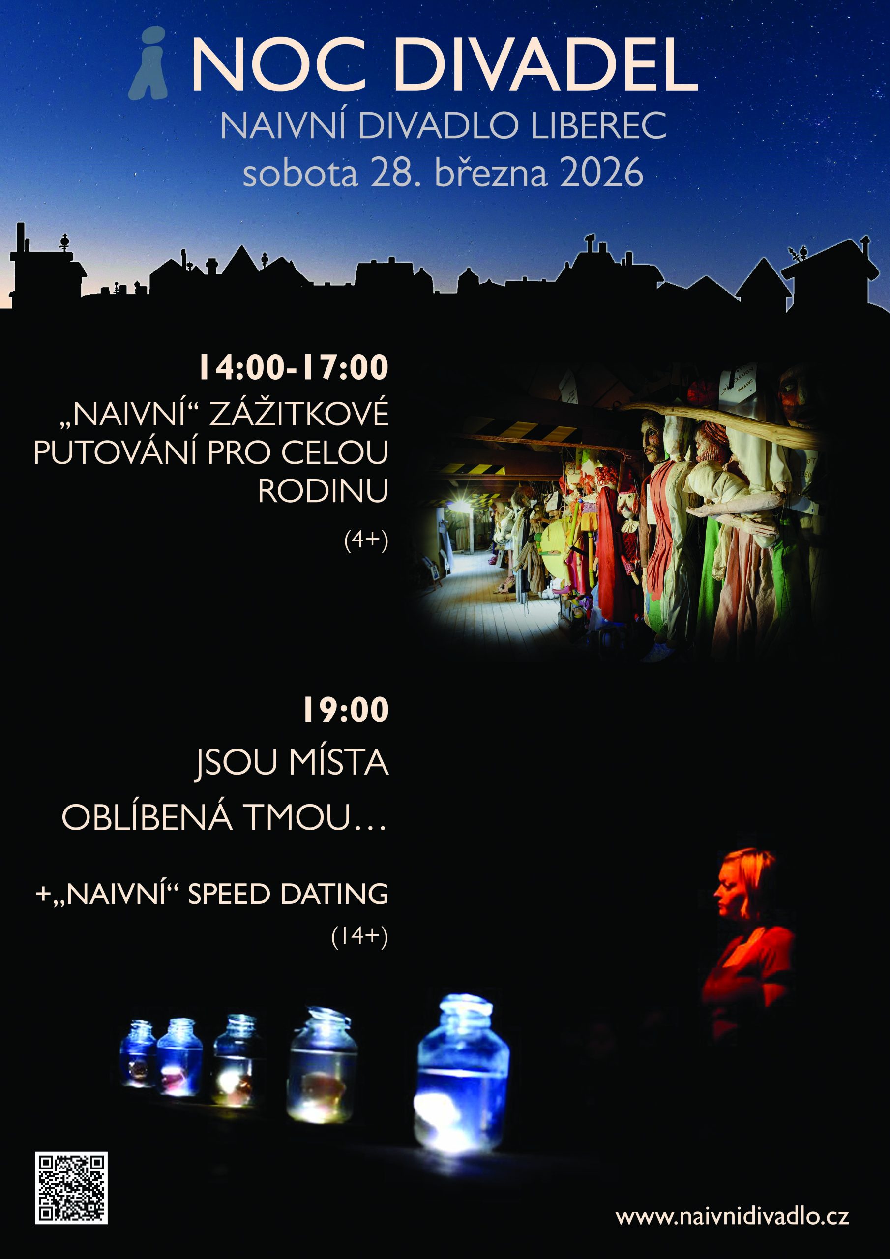 Březen je nejen měsícem jara, ale také tří významných divadelních svátků, jež si připomínáme v jeho druhé polovině (vedle Světového dne divadla a Světového dne divadla pro děti a mládež také Světový den loutkářství, který oslavíme 21. března). A právě u této příležitosti se v sobotu 28. března uskuteční již tradiční Noc divadel, na kterou si Naivní divadlo Liberec připravilo odpolední i večerní program pro celou rodinu. Diváci se mohou těšit na zážitkové putování divadlem, hernu pro nejmenší děti a nakonec večerní představení obohacené o zajímavé setkání s herci.