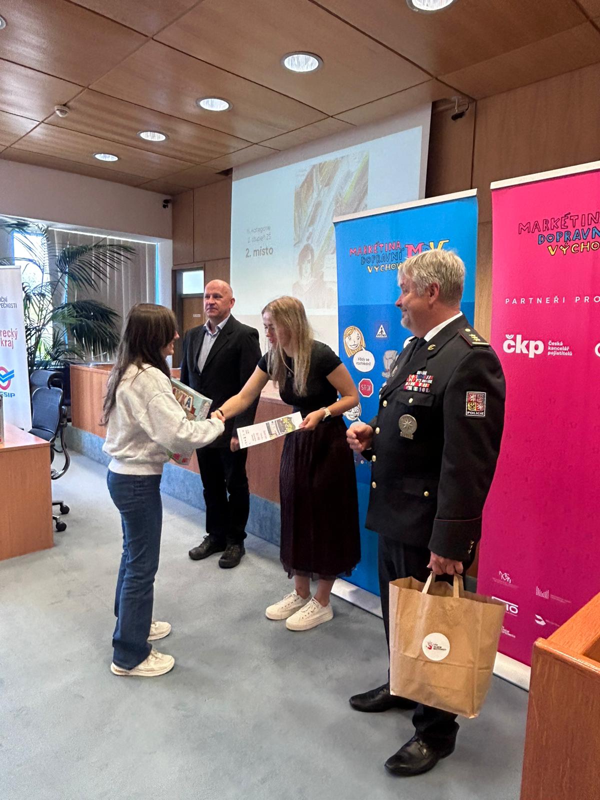 Slavnostní vyhlášení krajského kola proběhlo za účasti zástupců všech zapojených organizací i rodičů dne 25.dubna 2026 v zastupitelském sále Libereckého kraje. Odborná porota složená ze zástupců Policie České republiky, Libereckého kraje a Týmu silniční bezpečnosti měla nelehký úkol vybrat nejlepší práce v jednotlivých kategoriích. Čtyři kategorie výtvarné soutěže dle stupně vzdělávání a jedna kategorie literární.